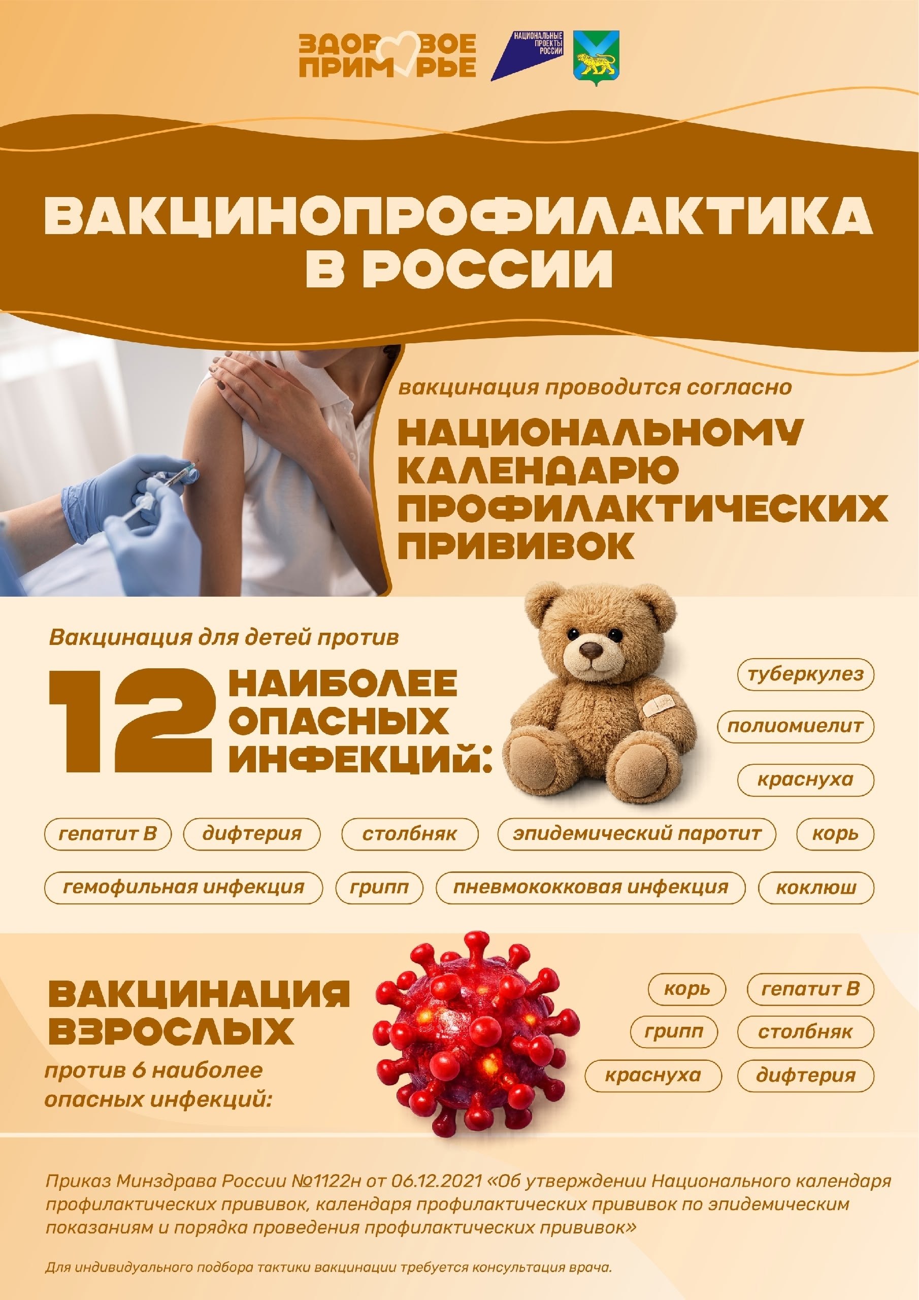 Национальный календарь прививок — это продуманный график вакцинации. Он помогает защитить детей и взрослых от опасных инфекций.