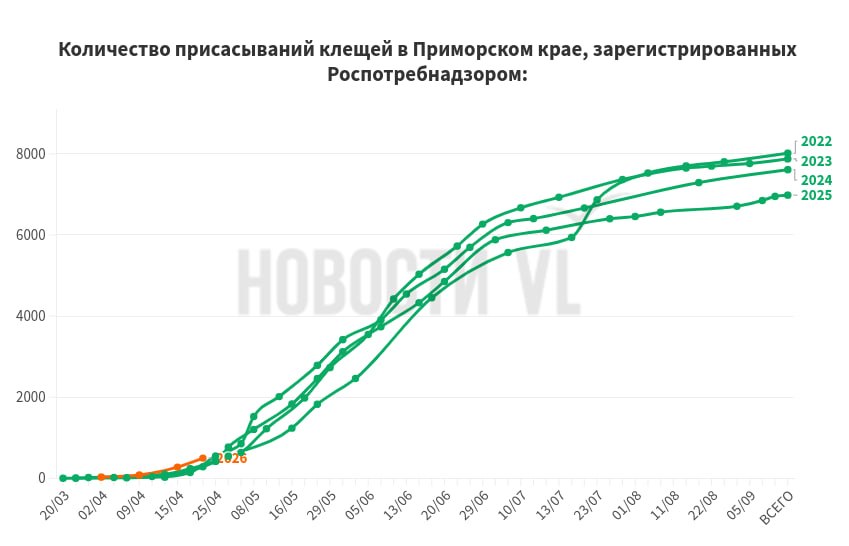 С начала эпидемического сезона в больницы Приморья обратились 497 человек, которые обнаружили на себе присосавшегося клеща. 68,8% пострадавших сдали паукообразных на исследование, и в одном случае оно выявило клещевой энцефалит.