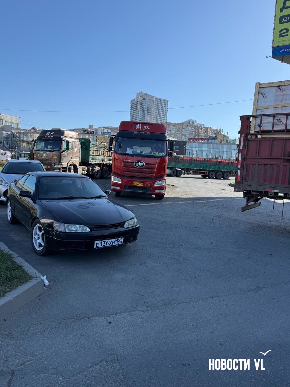 Сейчас на кольце скопилось несколько длинномеров, которые, судя по всему ждут своего коллегу (участника ДТП). Для проезда в сторону Спортивной осталась одна полоса.Подпишись на NewsVL.ru