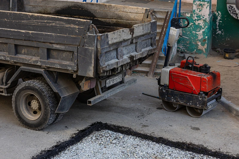 Сейчас рабочие сняли старый слой, подготовили основание для нового покрытия и уже укладывают асфальт.