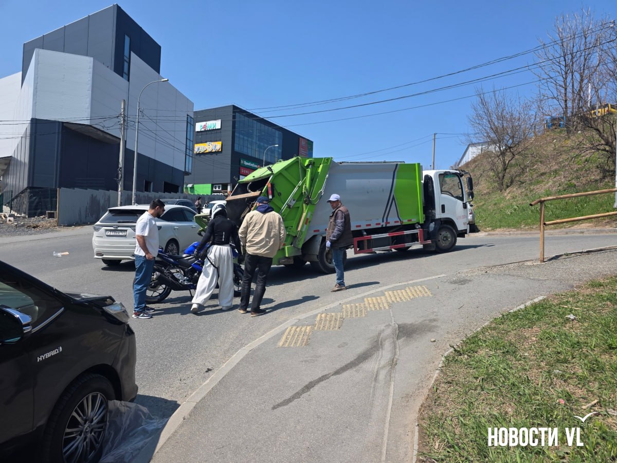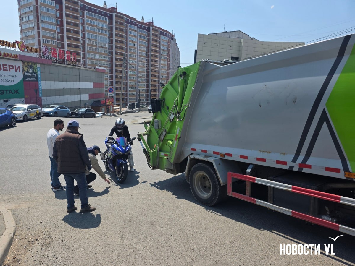 На Нейбута в районе ТЦ «Ладыгина» произошло ДТП с участием мусоровоза и мотоцикла.