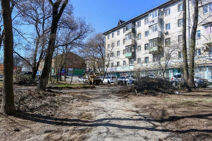 В Находке началось благоустройство сквера у магазина «Тысяча мелочей»