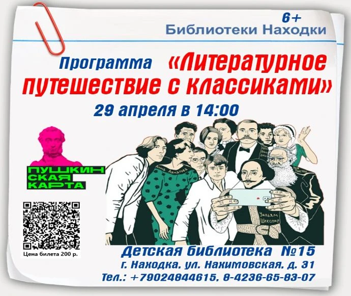 Живая игровая программа «Литературное путешествие с классиками», где книжные истории оживают.