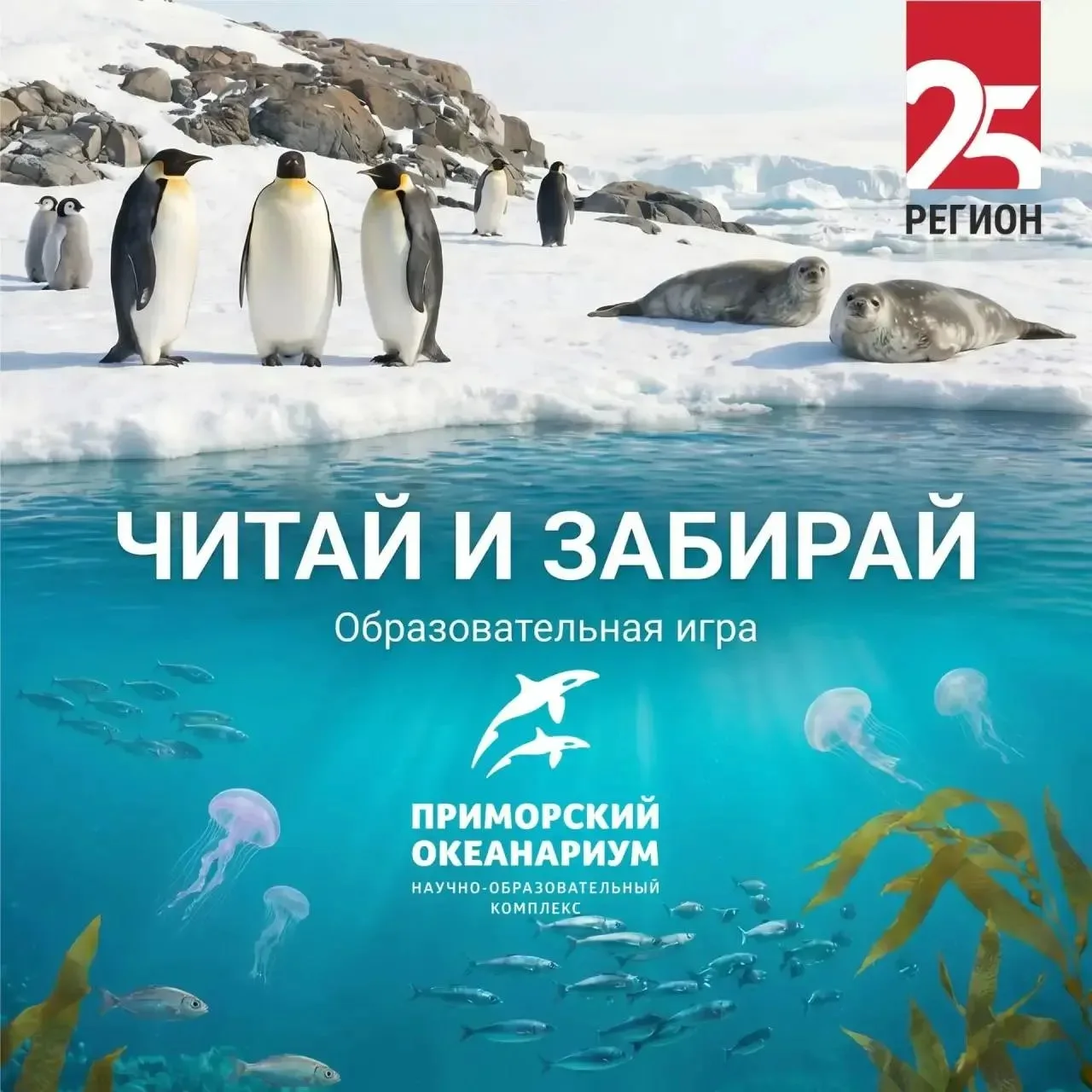 26 апреля с 12:30 до 15:00 к запуску Радио 25 РЕГИОН во Владивостоке и 10-летию Приморского океанариума в нашем Telegram канале пройдёт образовательная игра «Читай и забирай».