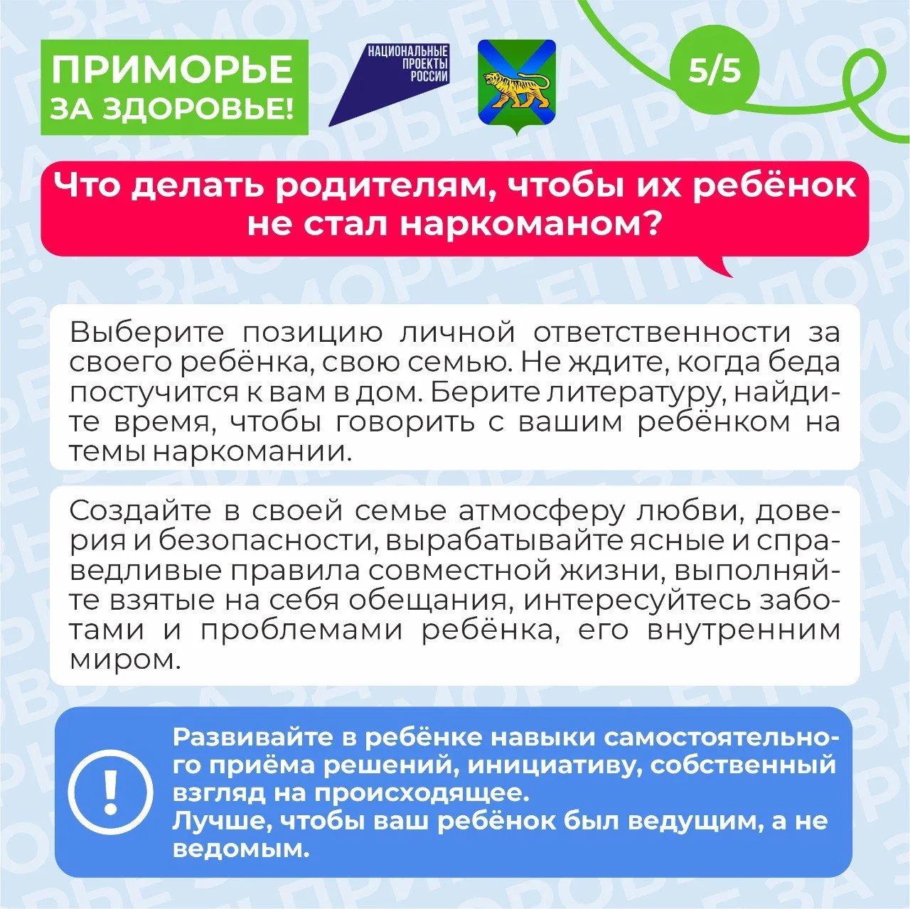Ни под каким видом, ни под каким предлогом, ни из любопытства, ни из чувства товарищества, ни в одиночку, ни в группе – НИКОГДА не пробуйте наркотики!