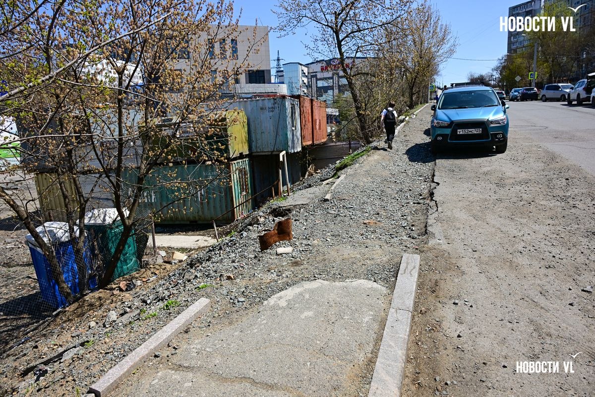 В октябре 2025 года на улице Баляева во Владивостоке прокладывали электрические сети для строящейся на месте рынка и бывшего трамвайного кольца поликлиники. Ямы забросали только землёй и щебнем. Без уплотнения грунта и асфальтирования края дороги начали осыпаться. От тротуара и вовсе ничего не осталось, горожане пробираются по бездорожью. Восстановить благоустройство в мэрии обещают до конца второго квартала, то есть до конца июня.