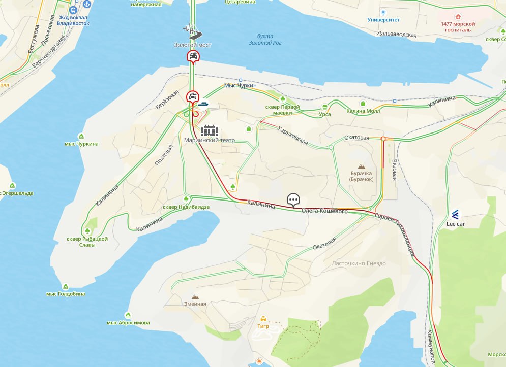 Из-за ДТП на заезде на Золотой мост собралась пробка со стороны Героев-Тихоокеанцев.