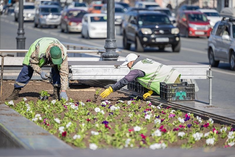 Накануне специалисты «Зелёного Владивостока» подготовили почву и начали высадку однолетников. По словам мастера бригады Ленинского района Олеси Бохан, озеленение — одна из самых любимых задач сотрудников: за смену команда может высадить до 5 тысяч растений.