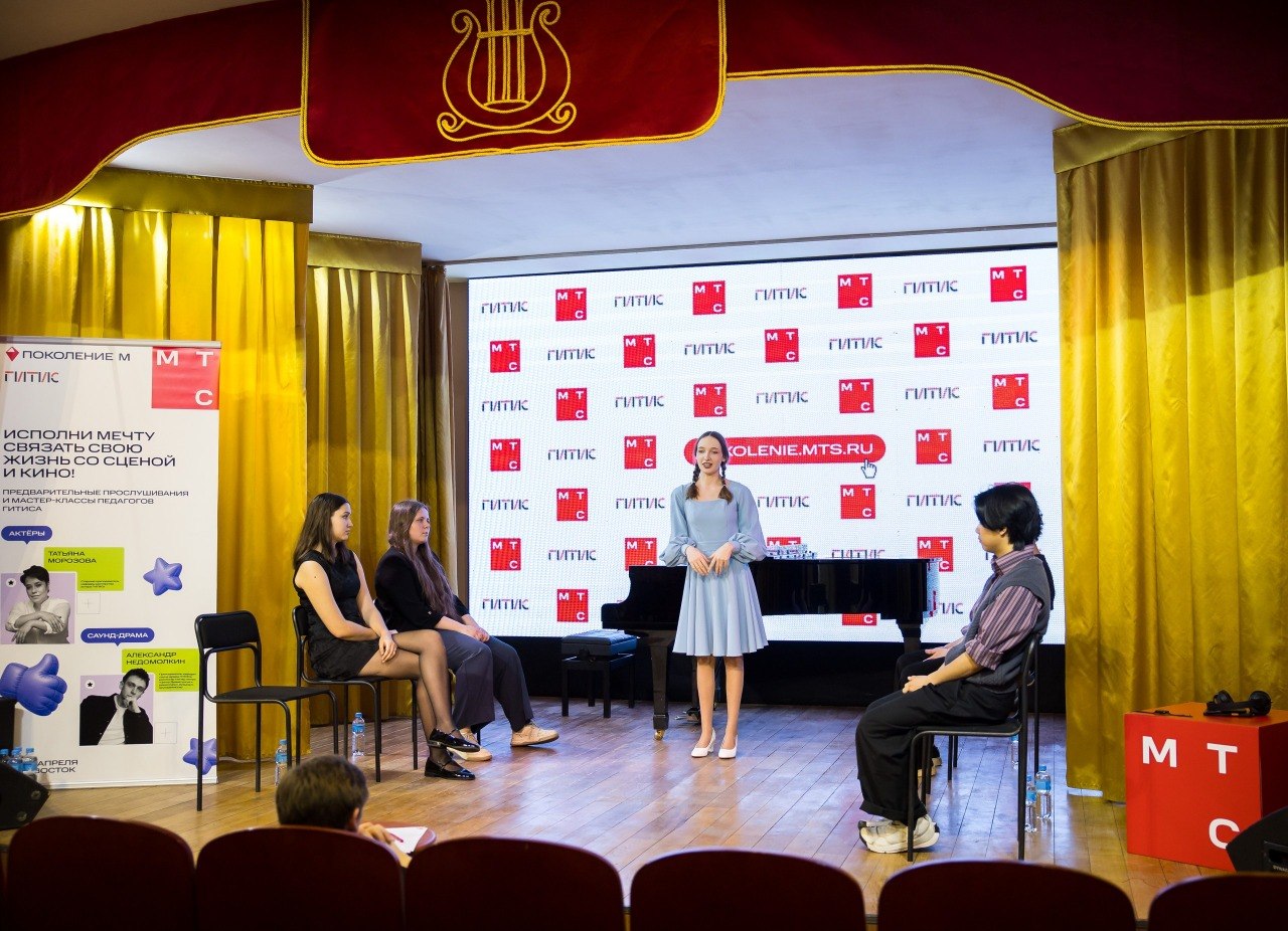 Подведены итоги очных прослушиваний в ГИТИС во Владивостоке в рамках проекта МТС «Поколение М». Кастинг походил сразу на два факультета – актерское и саунд-драмы. Оценивали талант юных артистов педагоги ГИТИСа Татьяна Морозова и Александр Недомолкин.