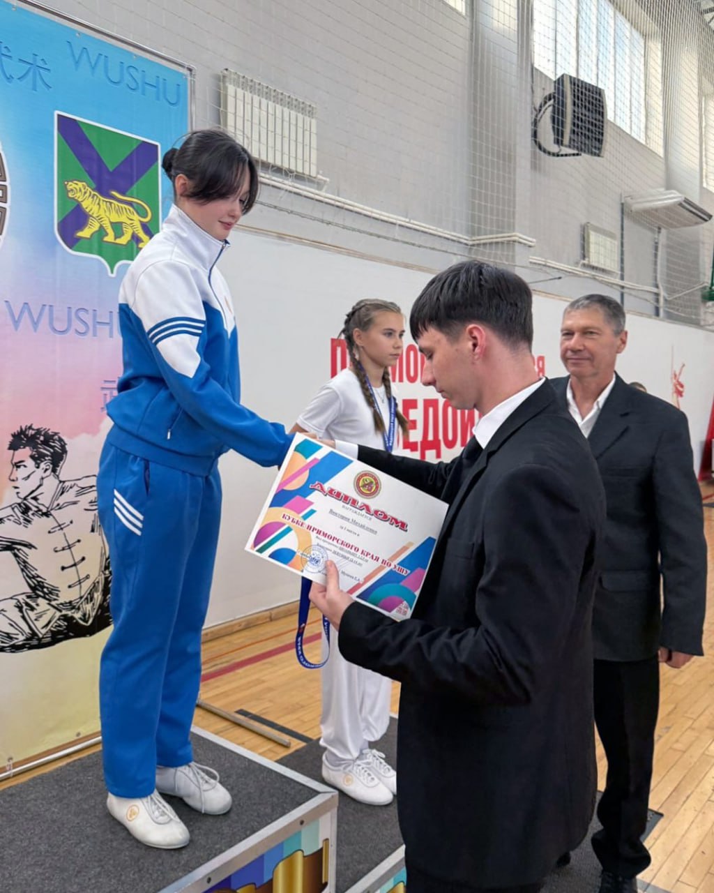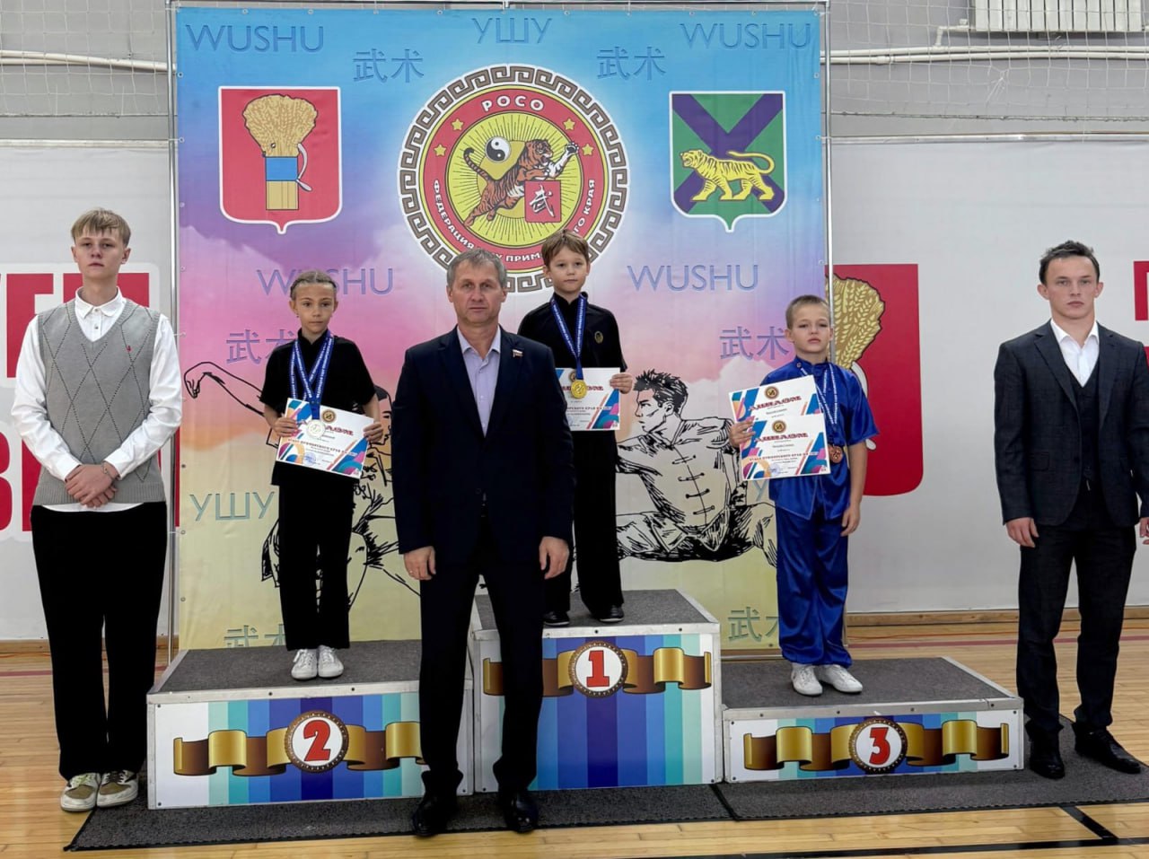 На церемонии открытия участников поприветствовали заместитель председателя Думы УГО, Заслуженный тренер России Александр Подоплёлов и президент федерации ушу Приморского края Николай Паничкин. Спортсменам, успешно выполнившим нормативы, вручили квалификационные книжки.