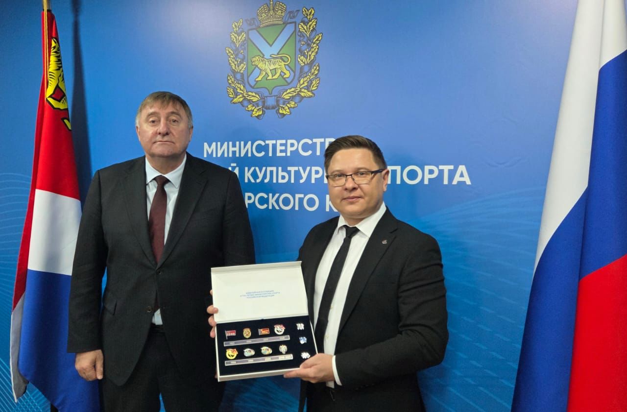 Алексей Романов передал в дар экспозиции министерства спорта Приморья юбилейную коллекцию знаков, созданную к 100-летию Министерства спорта Российской Федерации. В набор вошли памятные и исторические знаки, отражающие вековой путь развития отечественного спорта.