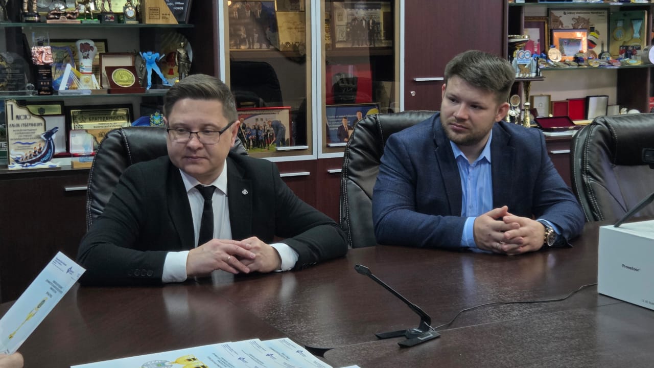 В спортивном ведомстве края состоялась рабочая встреча министра спорта Приморья Жана Кузнецова и руководителя региональных проектов объединения «Диалог-Конверсия» Алексей Романов.