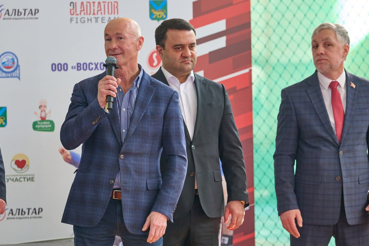 Участников стартов приветствовали начальник отдела физической культуры, спорта и подготовки спортивного резерва краевого минспорта Юрий Грачёв, глава Владивостока Константин Шестаков, президент федерации спортивной борьбы Приморья Олег Ледовских, вице-президент всероссийской федерации панкратиона Джони Авдои.
