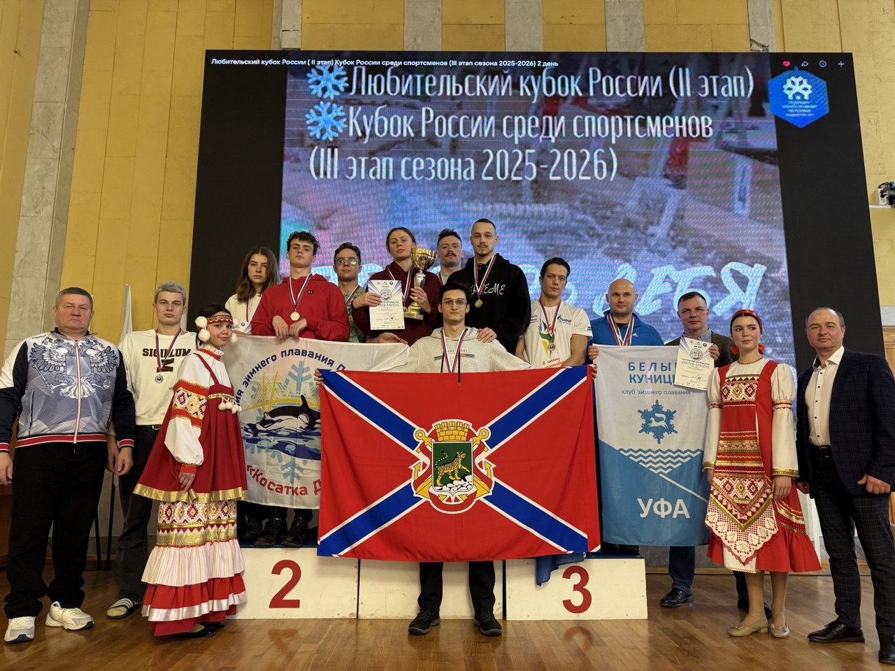Сборная команда Приморского края по зимнему плаванию «Косатка ДВ – Порт Вера» блестяще выступила на третьем этапе Кубка России и втором этапе любительского Кубка страны, которые прошли в Уфе.