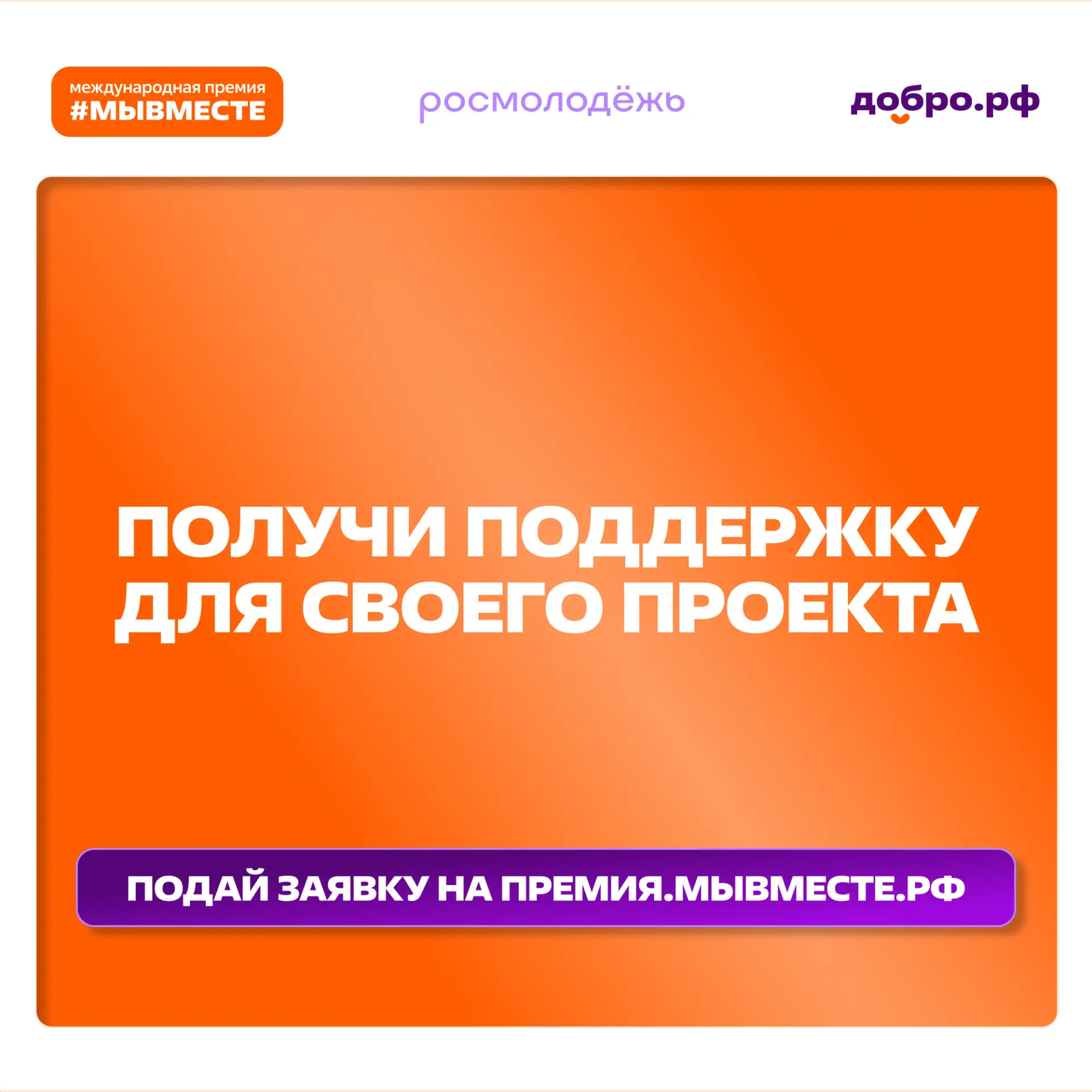 Приём заявок продлится до 24 мая на премия.мывместе.рф