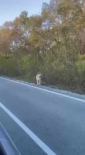 На трассе под Большим Камнем неспешно прогуливался величественный амурский тигр. Хищник не только не испугался автомобиля, но и подошёл почти вплотную, с явным интересом разглядывая людей внутри.Подпишись на @kpdvru |...